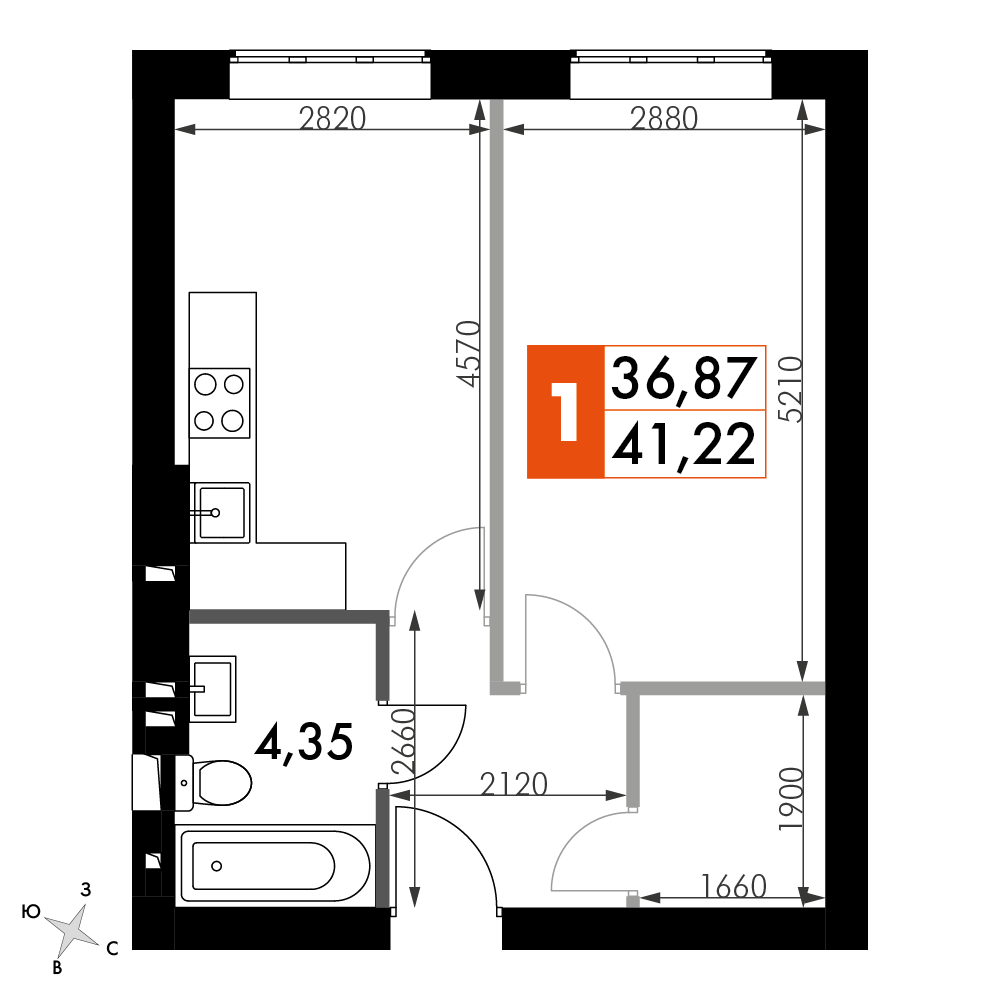 Квартира №52, Дом 30, Секция 1, Этаж 4
