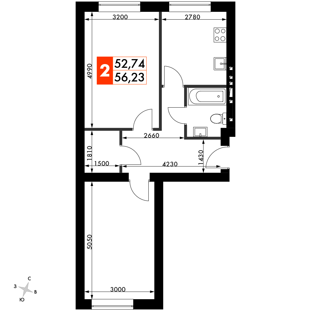 Квартира №39, Дом 46, Секция 2, Этаж 3