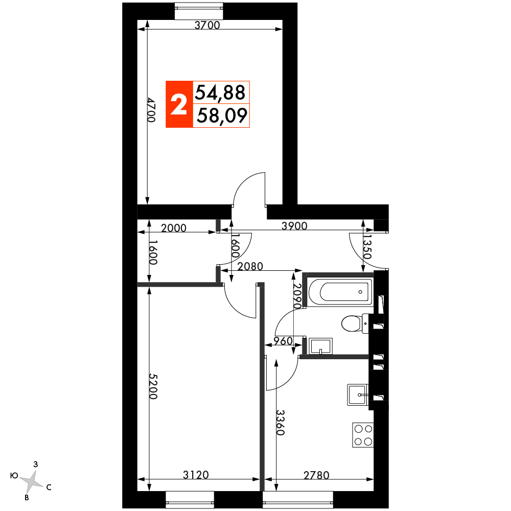 Квартира №91, Дом 46, Секция 5, Этаж 4